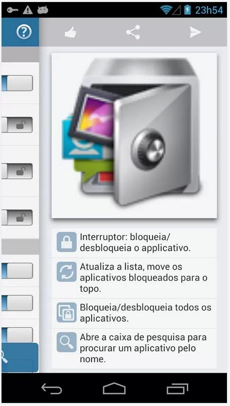 Existem também usuários que se incomodam em colocar senha na tela de bloqueio, pois acham que não há razão para bloquear completamente o aparelho, para isso, podemos utilizar um aplicativo para bloquear apenas apps ou arquivos específicos, deixando o acesso livre para outras funções do aparelho. Estamos falando do App Lock.