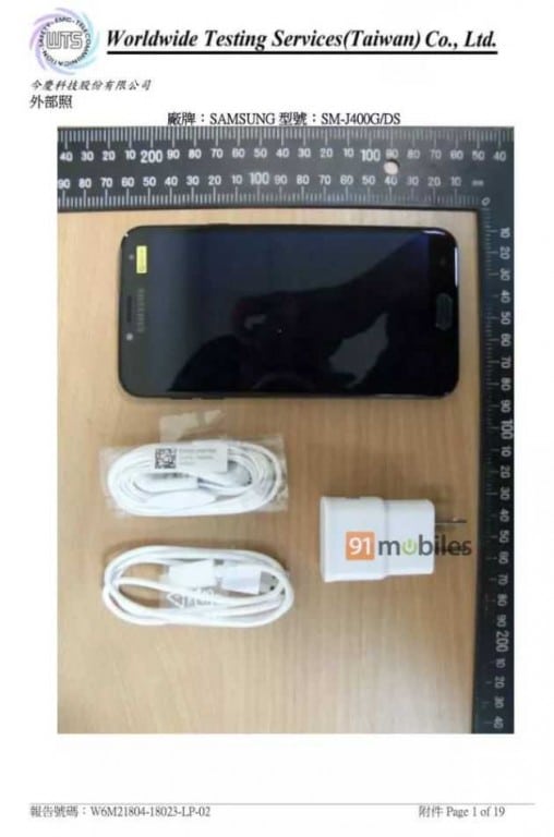 O Galaxy J4 contará com uma tela  nas proporções 16: 9 com os botões de hardware habituais da Samsung abaixo. A foto frontal também revela um flash frontal para melhores selfies em ambientes com pouca luminosidade.