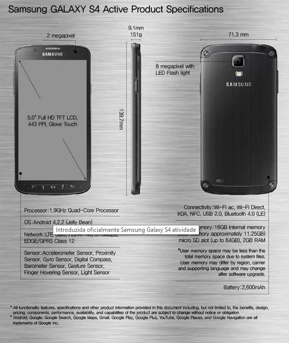 Confira também: Principais Características Galaxy S4 Active