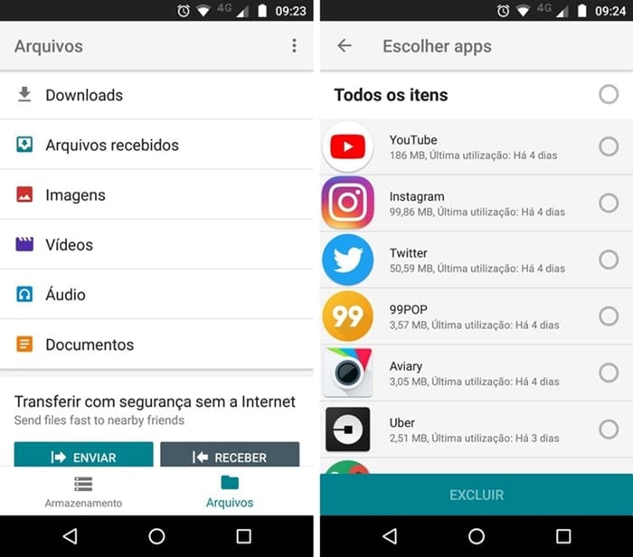 Assim como outros gerenciadores, o app organiza os arquivos por categorias e até oferece dicas para você otimizar o espaço disponível em seu smartphone ou tablet com Android.