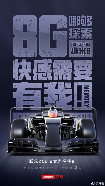 Todos sabem que a Lenovo gosta de provocar seus smartphones antes do lançamento. Assim como fez com o Z5, vem agora fazendo também com o Lenovo Z5s. Agora, a fabricante publicou na Weibo que os Z5 terá mais de 8GB de RAM. Assim, podemos matar a charada e dizer que ele incluirá 10 GB de RAM, o que seria ótimo para as atividades mais pesadas.