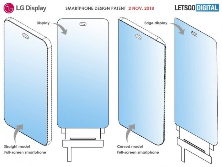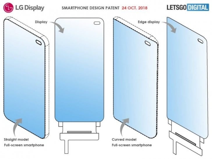Na verdade, a LG possui atualmente duas patentes, sendo uma com bordas curvas e um com retas. No entanto, a ideia é a mesma em ambos os casos. Assim, temos um recorte de formato oval onde ficará a câmera de selfie junto com os sensores usuais.