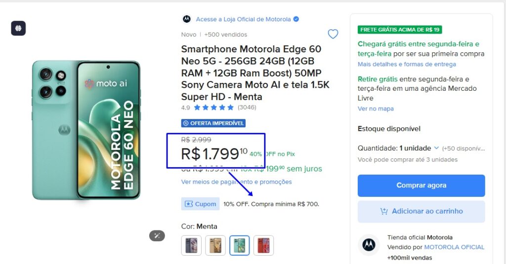 Mercado Livre libera cupom e Motorola Edge 60 Fusion fica com preço inédito