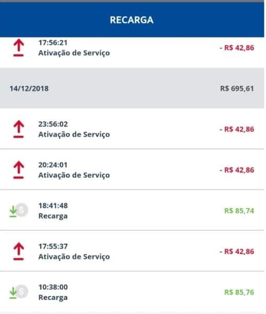 De acordo com um usuário, ele contratou o pacote que oferece 4,3GB por R$ 50, que daria direito aos benefícios citados anteriormente. No entanto, do segundo dia em diante, o usuário se deparou com uma cobrança diária de R$ 42,86.