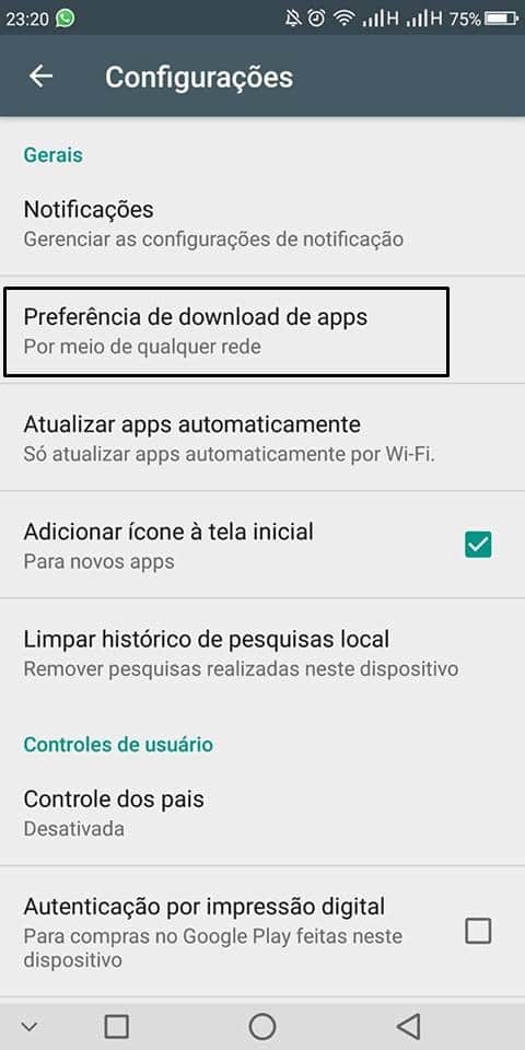Caso você queira evitar esse tipo de problema, basta seguir alguns passos. Após acessar a Play Store, Vá no menu superior esquerdo e acesse configurações. Em seguida, toque em Preferência de download de app” e por fim em somente por Wi-Fi.