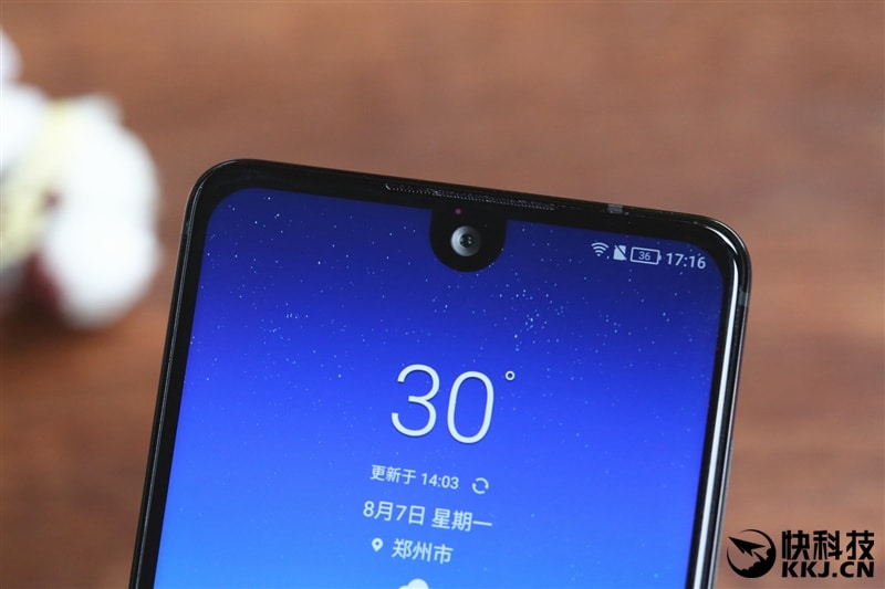 Nas duas bordas laterais como na parte superior, as margens são mínimas, porém na parte inferior, a fabricante optou por manter o botão home. A tela tem 5,5 polegadas, com resolução de 2040 x 1080 pixels, tem proteção Corning Gorilla Glass 5, sendo que ela ocupa pelo menos 87,5% do corpo do aparelho.